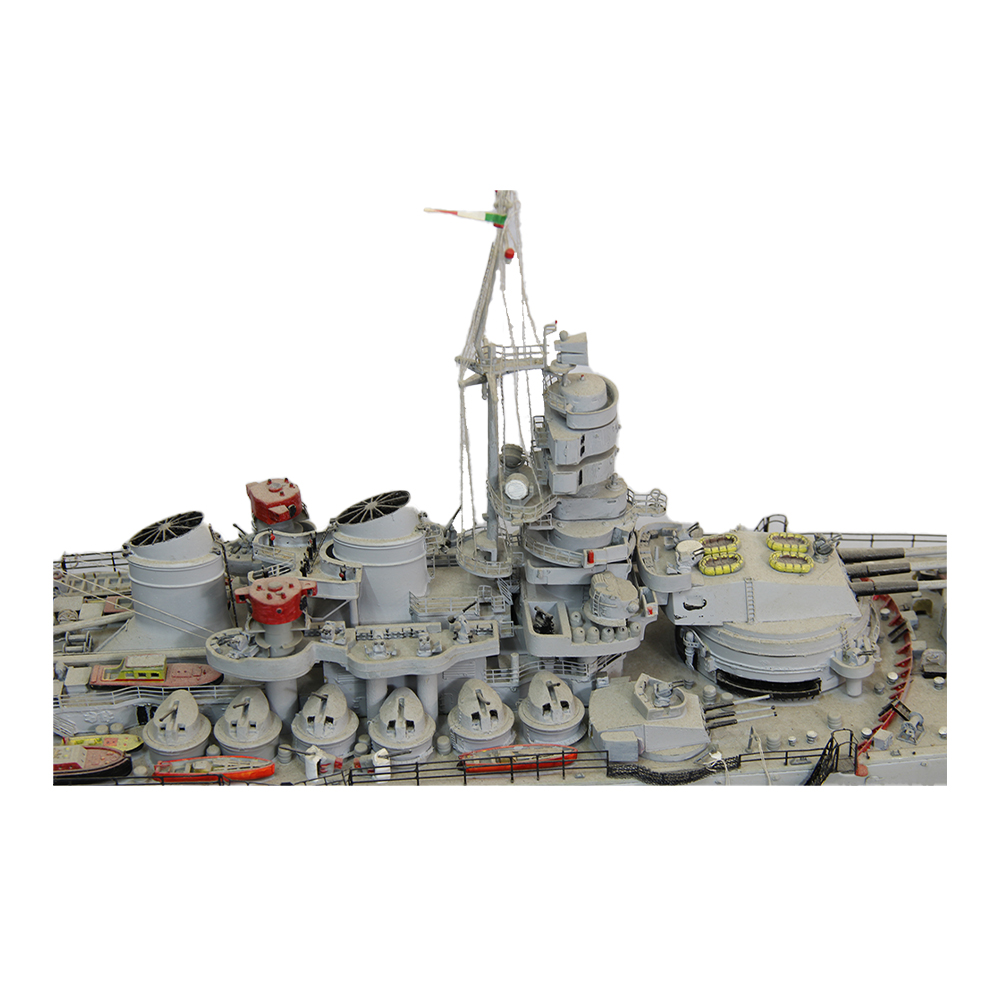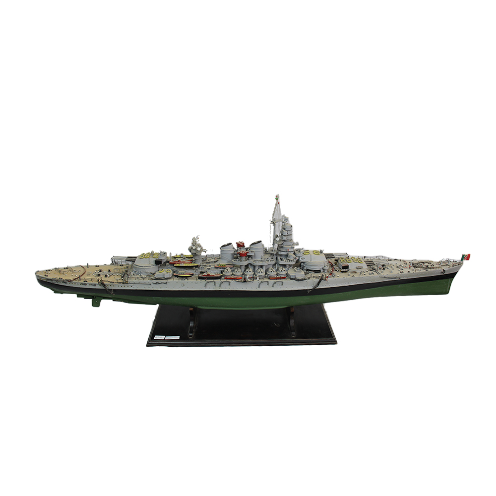 MODELLO DELLA NAVE DELLA SECONDA GUERRA MONDIALE RN ROMA Supporto base in legno. Italia XX secolo h cm 38 x 124 x 27