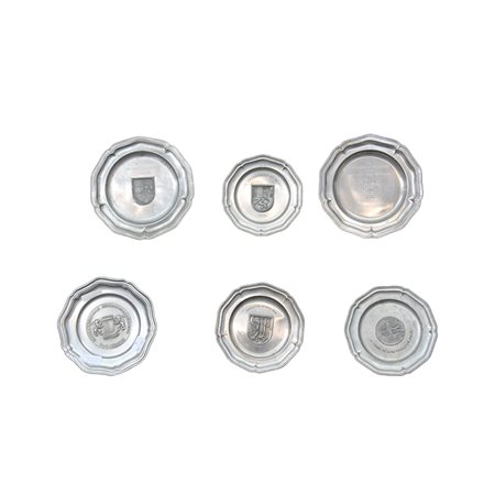 LOTTO DI 6 PIATTI in peltro con incisioni commemorative varie. Germania XX secolo misure varie