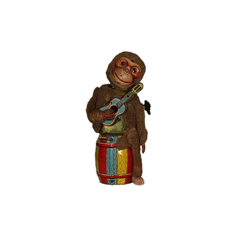 GIOCATTOLO VINTAGE Scimmietta con chitarra che suona da revisionarne il funzionamento. Usure e mancanze. Giappone meta' del XX secolo h cm 22