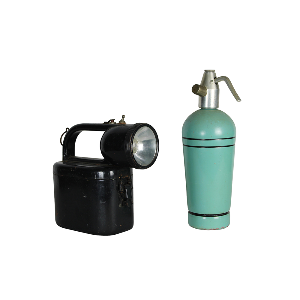 LOTTO COMPOSTO DA una lampada e un sifone vintage vintage italiano h cm 21 x 22 x 10 / h cm 31,5 x 10