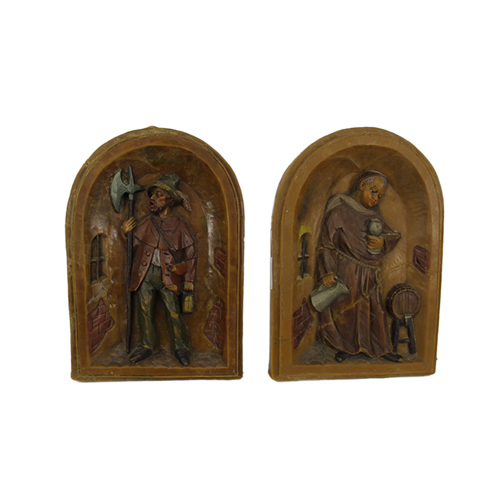 COPPIA DI BASSORILIEVI in cera raffiguranti personaggi. Riparazione su una delle cere. XX secolo h cm 30 x 21 x 2,5