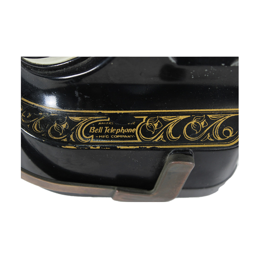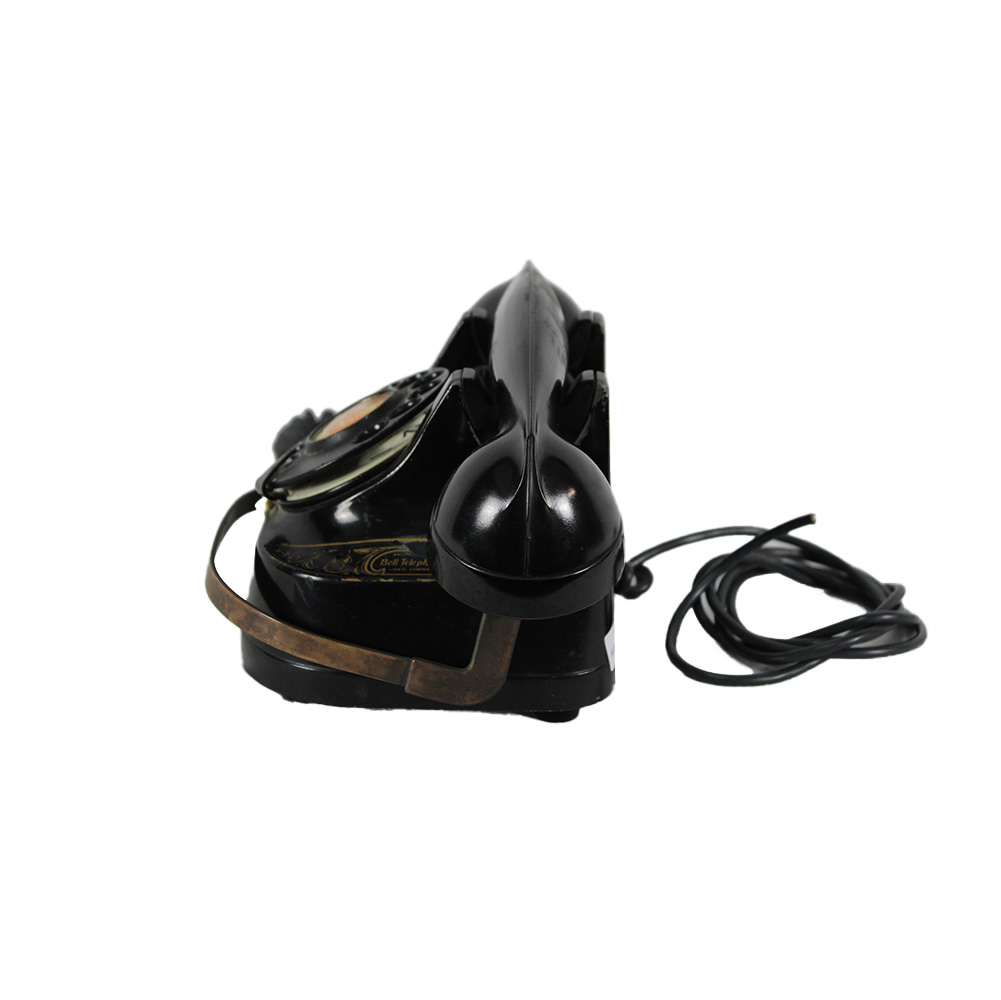 TELEFONO VINTAGE in bachelite nera con decori e logo del produttore, produzione belga produttore Atea rtt b periodo stimato anni 50 h cm 15 x 24 x 15