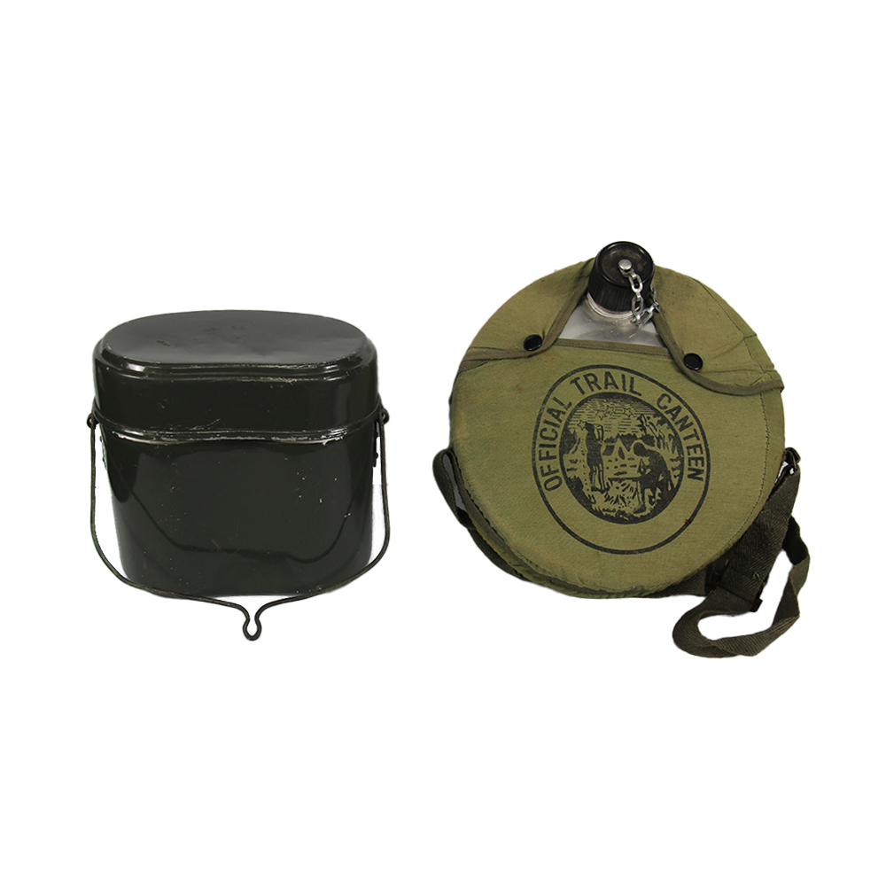 LOTTO DI 2 borracce militari del secondo dopoguerra 1 da Scout e 1 gavetta militare d'epoca.. Discrete condizioni. Italia anni 50 e 80 del XX secolo misure varie