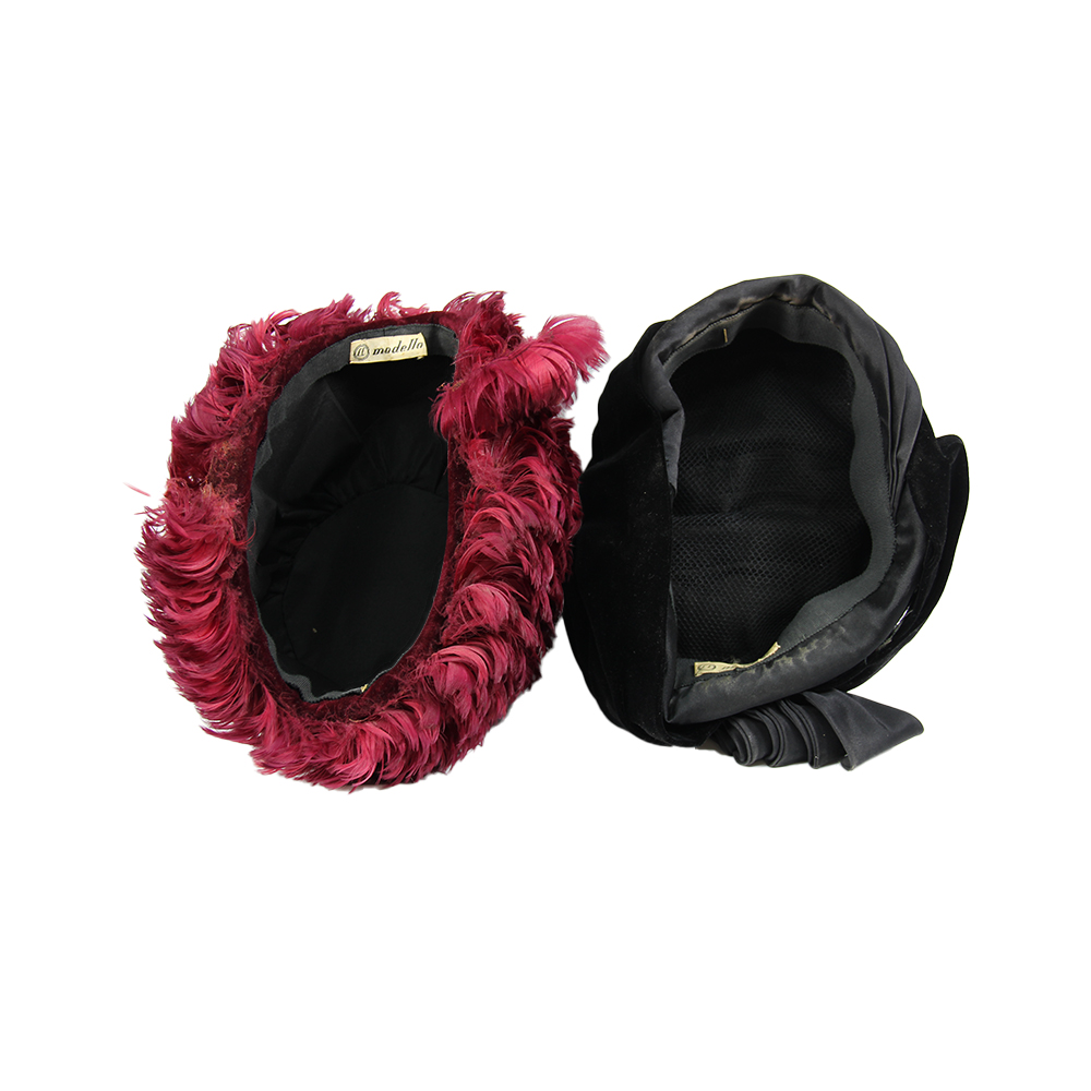 LOTTO DI 4 CAPPELLI DA DONNA VINTAGE Lotto di 4 cappelli da donna vintage di diversa fattura. Usure e mancanze nel piumaggio. Manifattura italiana XX secolo
