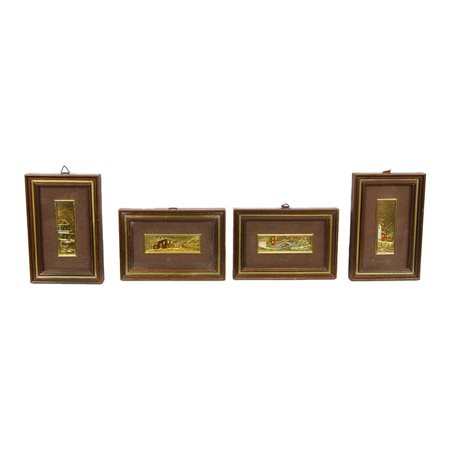 LOTTO DI 4 QUADRETTI FOGLIA ORO raffiguranti paesaggi. Italia XX secolo h cm 15,5 x 10,5