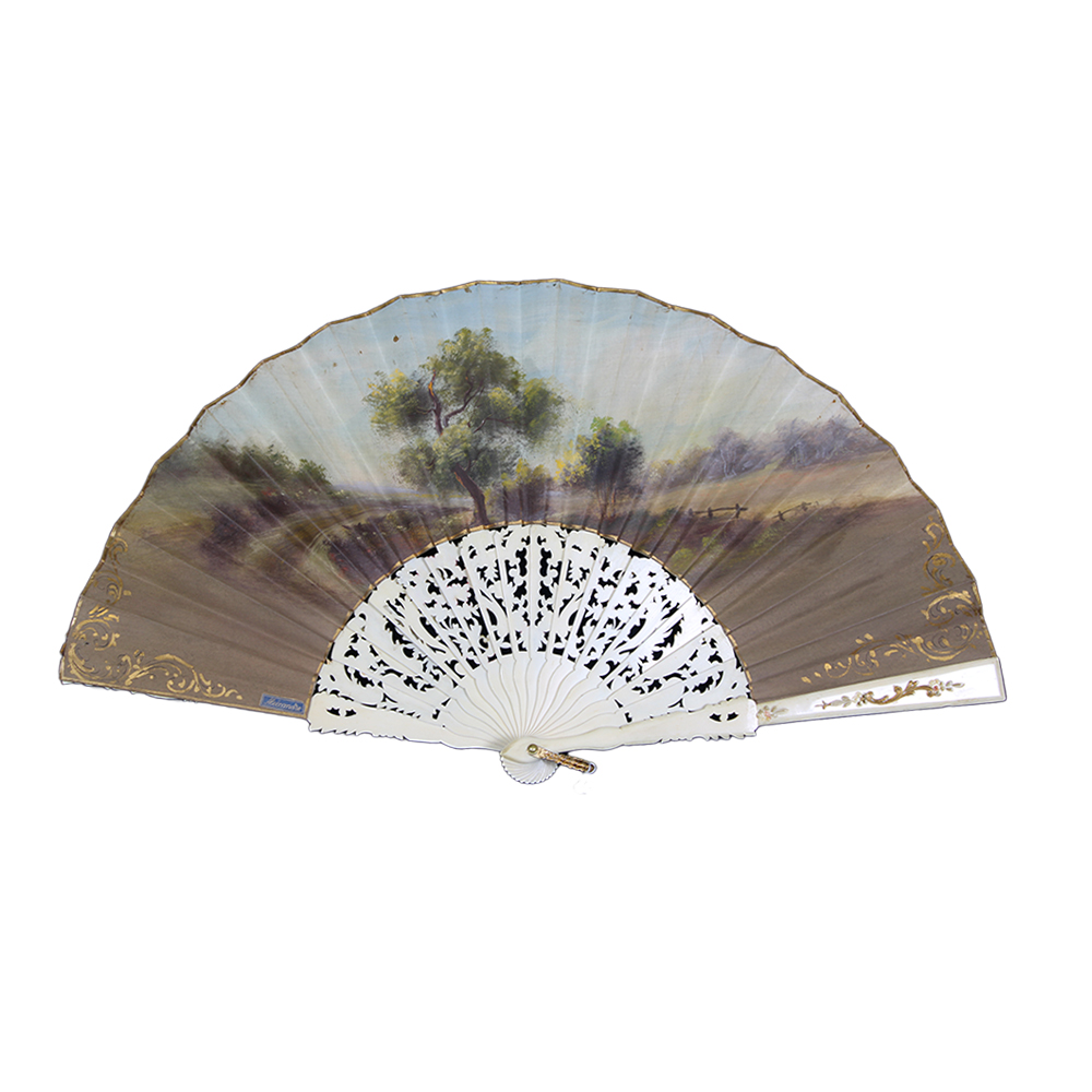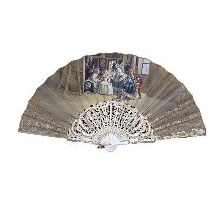 VENTAGLIO con stecche traforate e scena Las meninas da Velasques formato Reig. Spagna Francia XIX/ XX secolo h cm 25 x 42