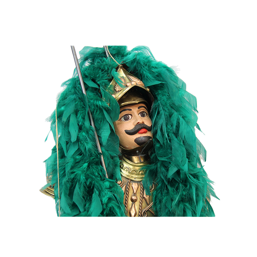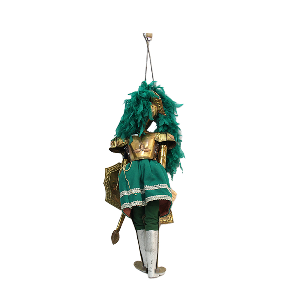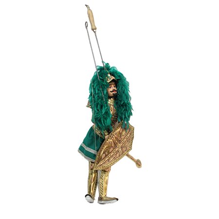 PUPO SICILIANO in legno, metallo, tessuto e piumaggio. Italia XX secolo . Mis. H 100