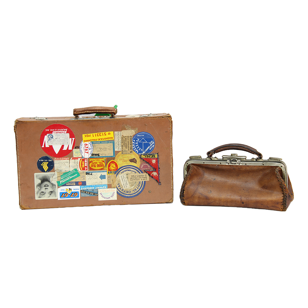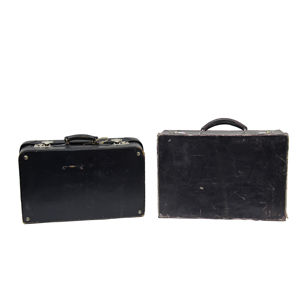 SET DI 3 VALIGIE VINTAGE ED 1 BORSETTA Usure varie e mancanza delle chiavi. XX secolo Misure varie