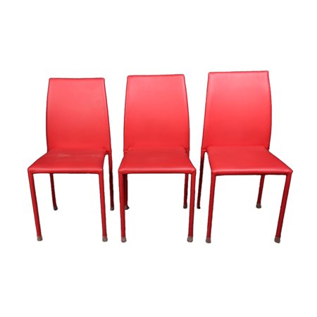 LOTTO DI 3 SEDIE rivestite in pelle rossa dal gusto vintage anni 80/90. Italia XX secolo . Mis h 93 x 43 x 42
