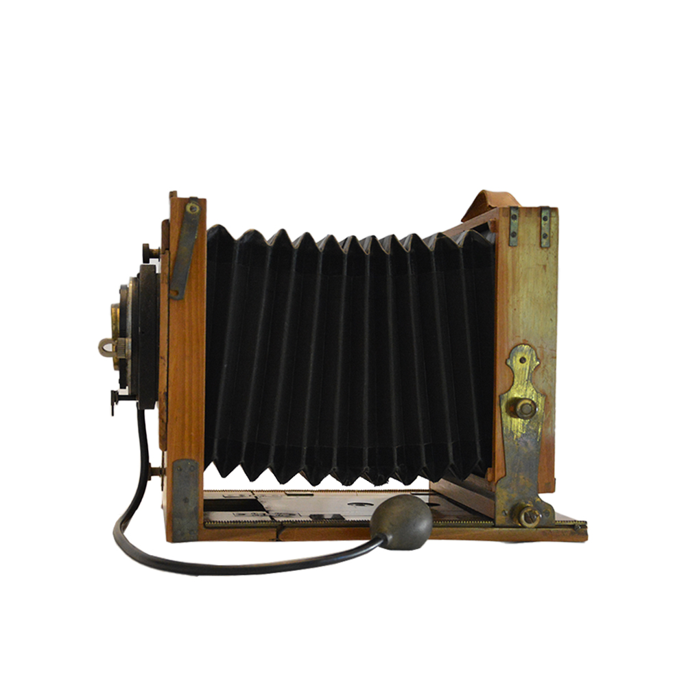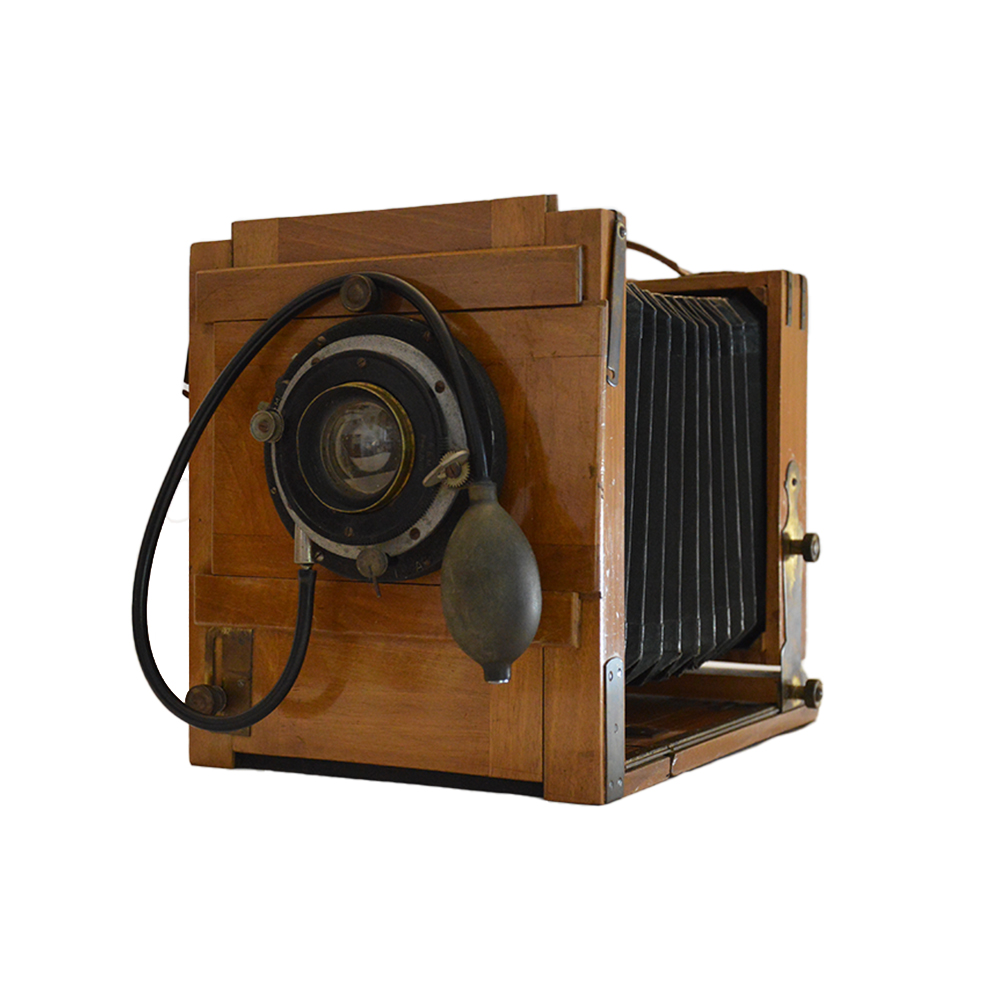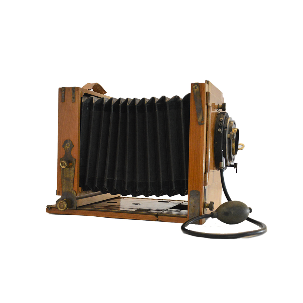 Macchina fotografica a soffietto con treppiedi