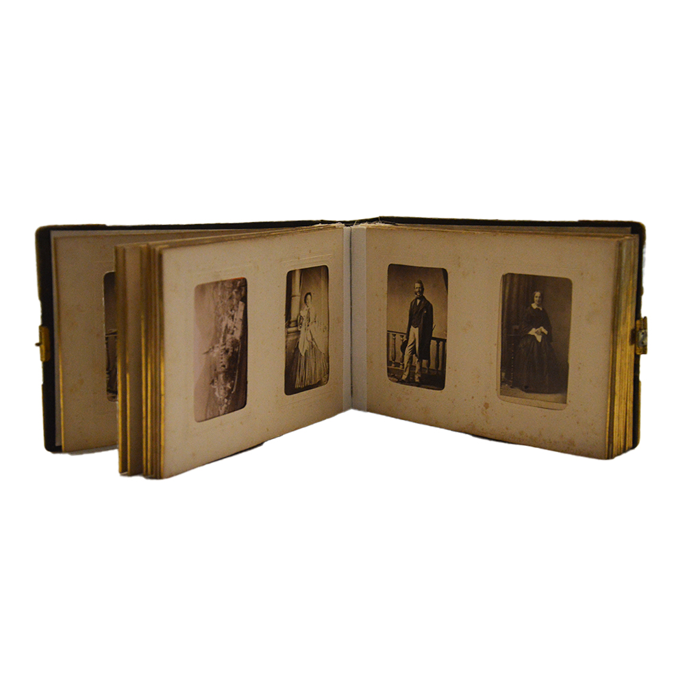 Album fotografico antico Album fotografico in cartoncino e ottone ,fine 800, completo di ottanta foto sia formato margherita sia formato gabinetto. Molte foto tedesche. Ottime condizioni h cm 15 x 21 x 7