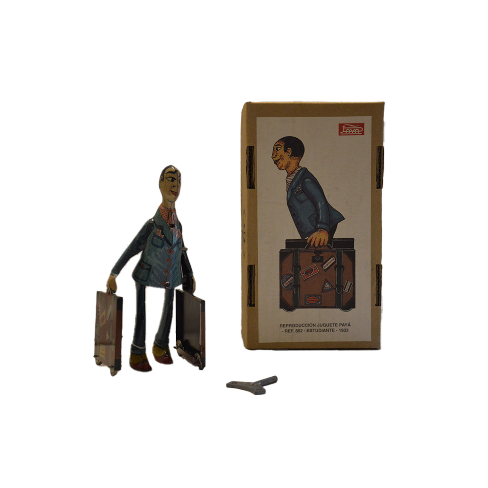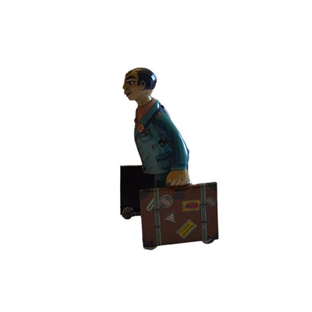 Omino con valige con scatola Giocattolo in latta serigrafata edizione limitata 1577/5000 con certificazione origine Spagna marca Paya con movimento a molla in perfette condizioni anno 1990 h cm 18 x 8 x 8