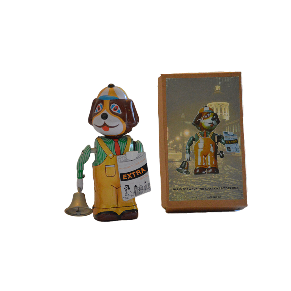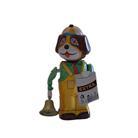 Cagnolino a molla con scatola Giocattolo in latta serigrafata in ottime condizioni funzionamento a molla origine Cina h cm 17 x 11 x 8