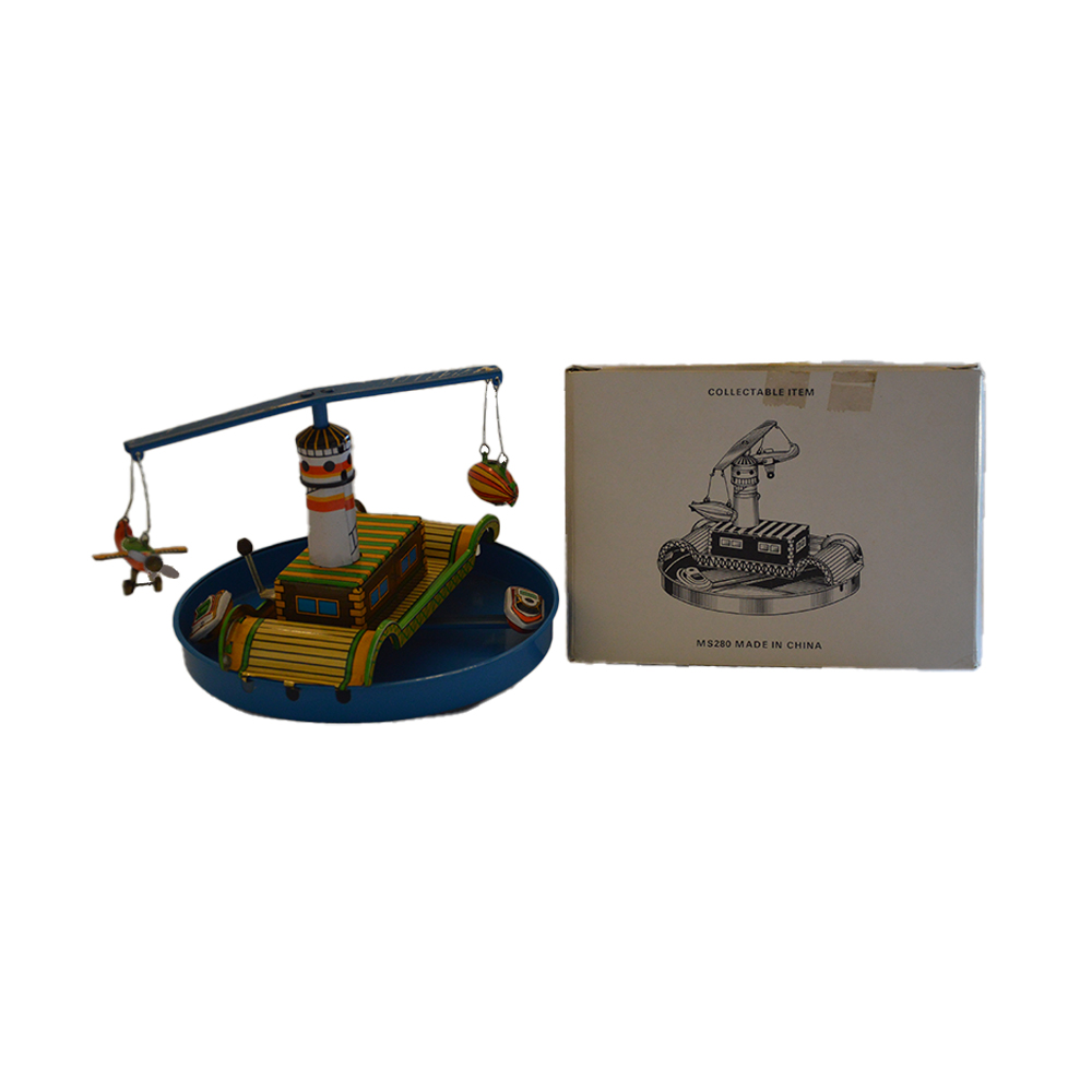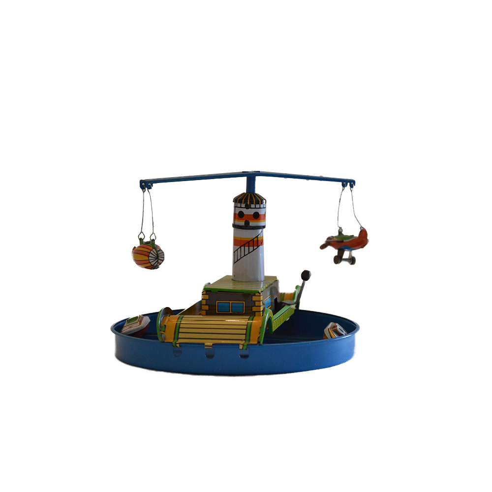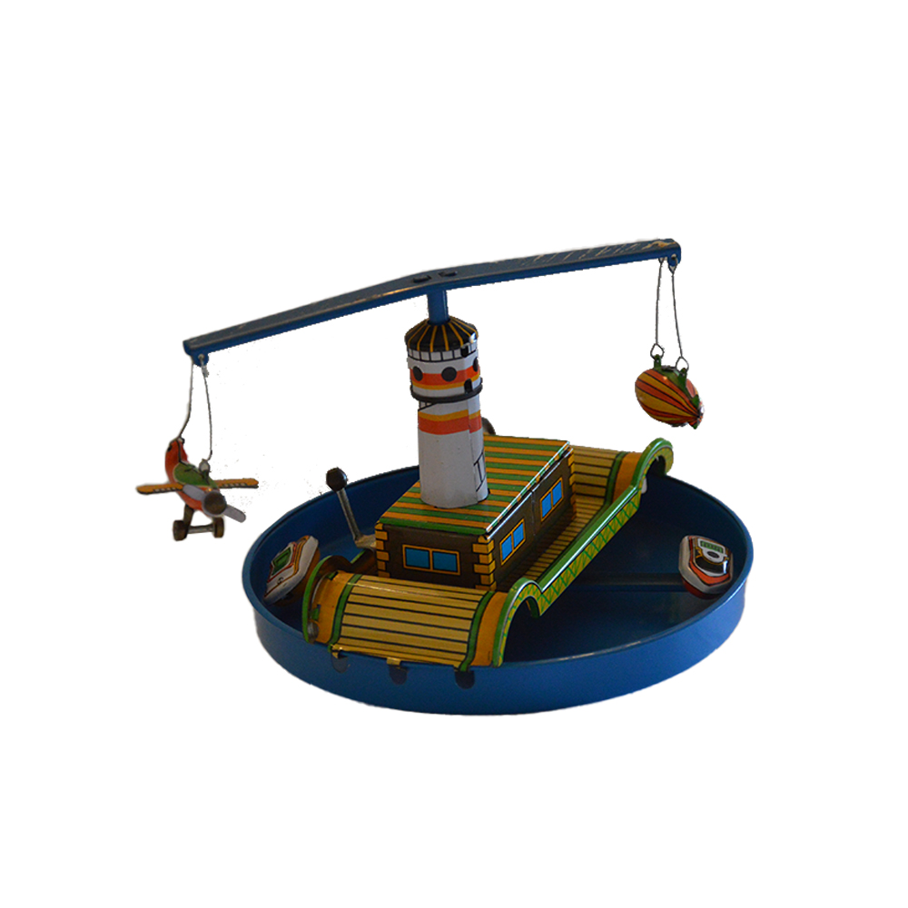 Giostrina serigrafata a molla con scatola Giocattolo in latta serigrafata provenienza Cina, in buone condizioni,anni 90, con scatola. h cm 11 x 14 x 14