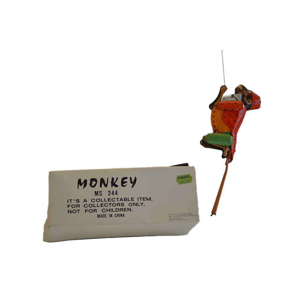 Scimmietta serigrafata con scatola Giocattolo in latta serigrafata provenienza Cina, in ottime condizioni, anni 90. h cm 23 x 4 x 8