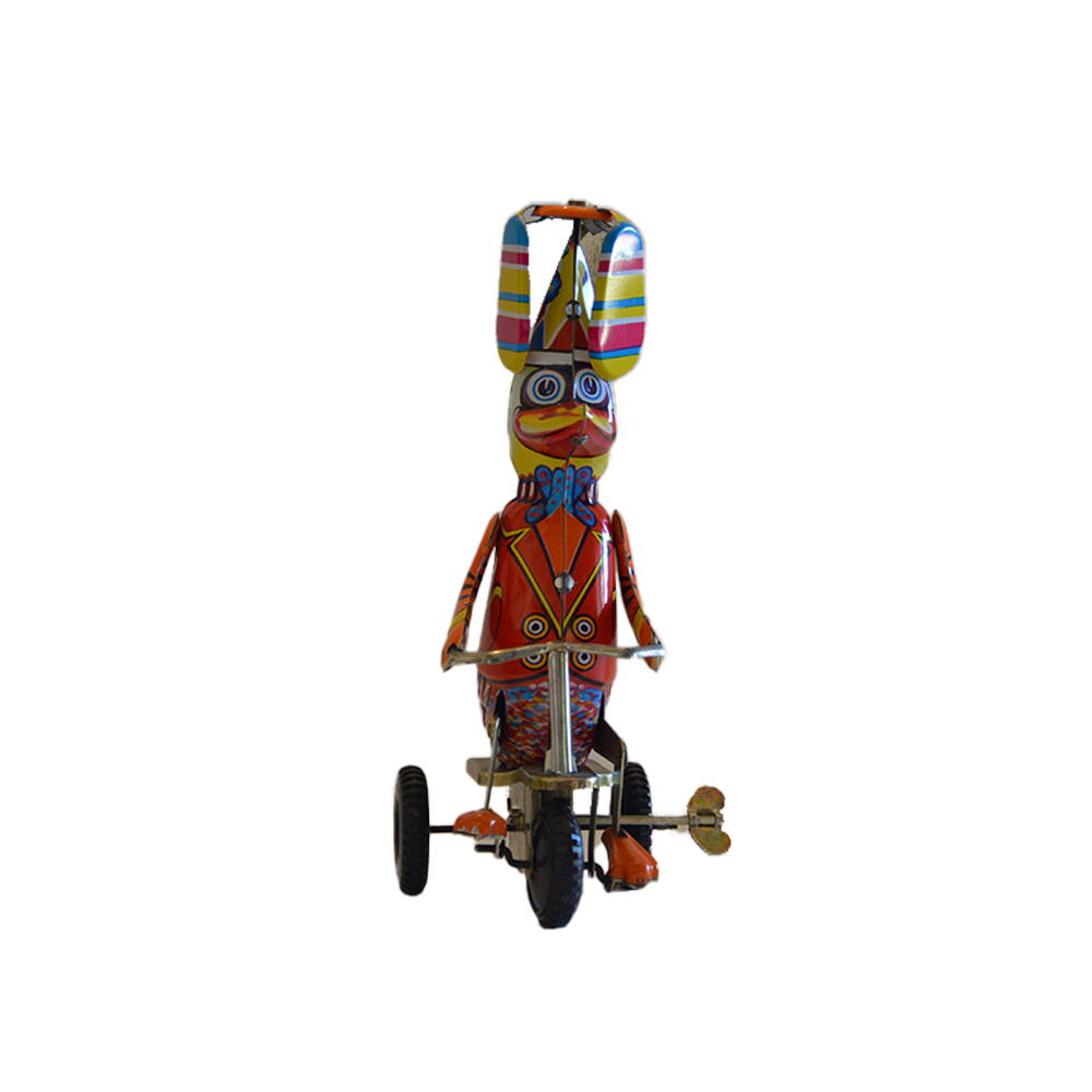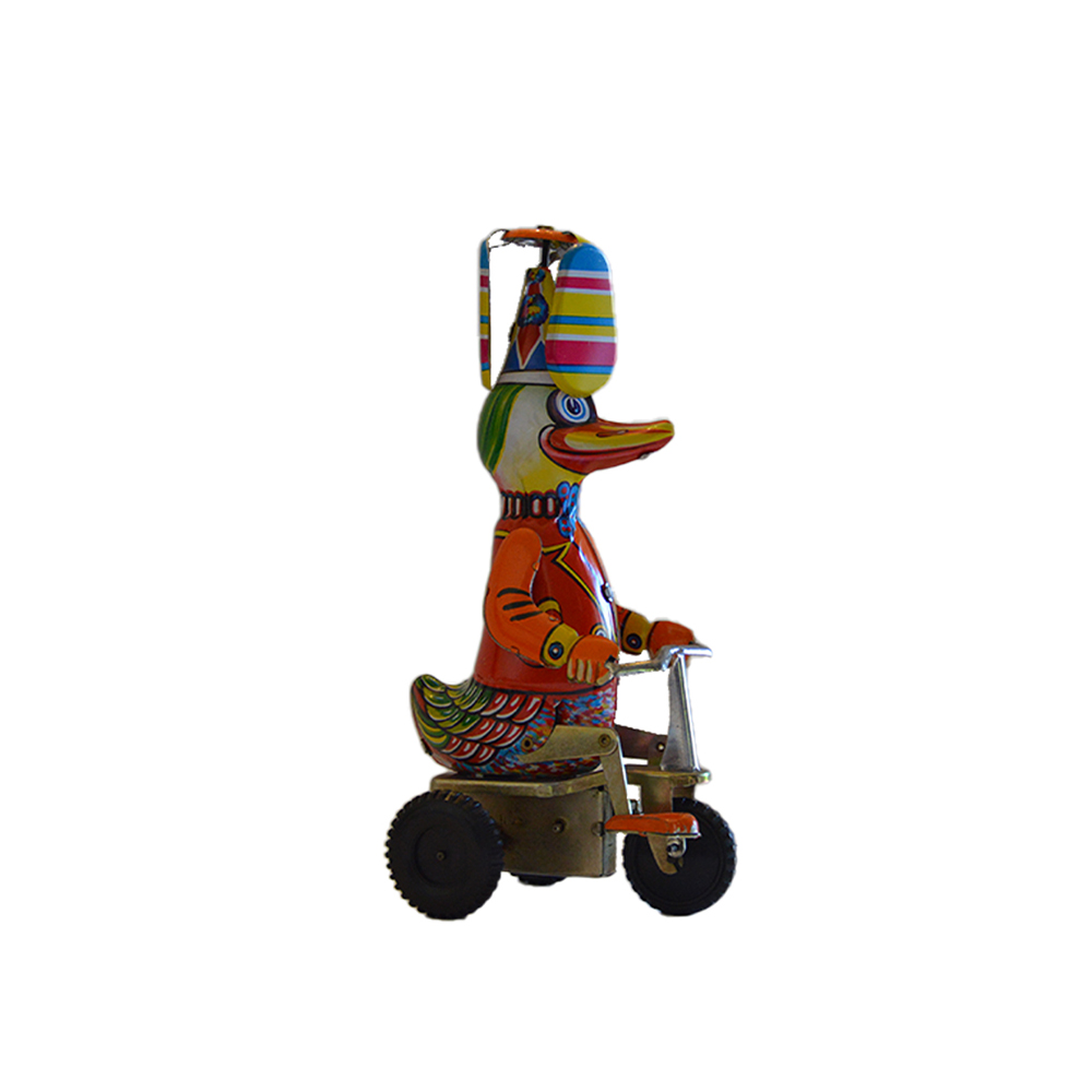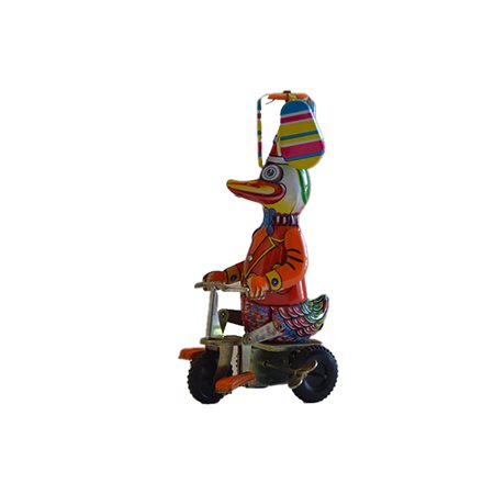 Papero in bici Giocattolo in latta serigrafata provenienza Spagna in ottime condizioni, anni 80. h cm 21 x 10 x 11