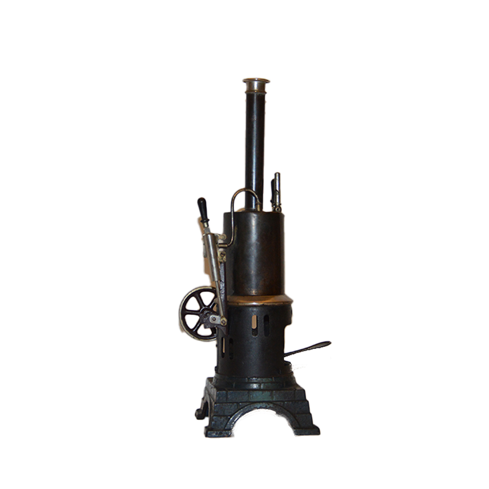 Macchina a vapore per giocattoli Bing verticale Dampfmachine in ghisa e ottone con bruciatore e stoppino, in ottime condizioni, provenienza Germania ditta Bing anno 1920. h cm 30 x 9 x 9