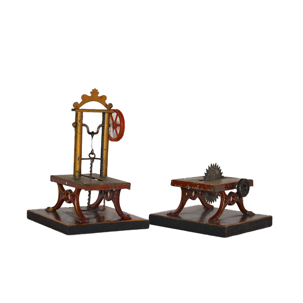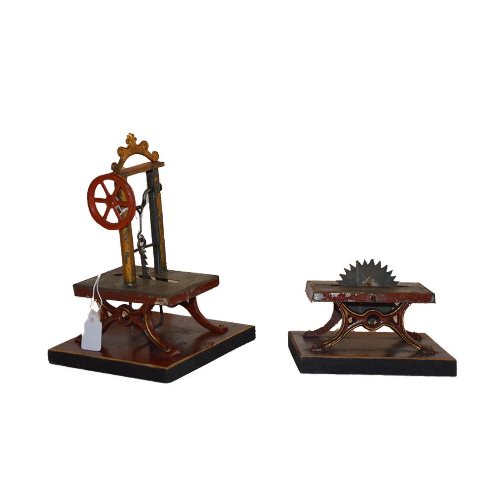 Gruppo due giochi per macchina a vapore Giochi serigrafati in ghisa e latta con base in legno in buone condizioni per macchina a vapore provenienza Germania anno 1920. h cm 15 x 9 x 9 - h cm 7 x 9 x 9
