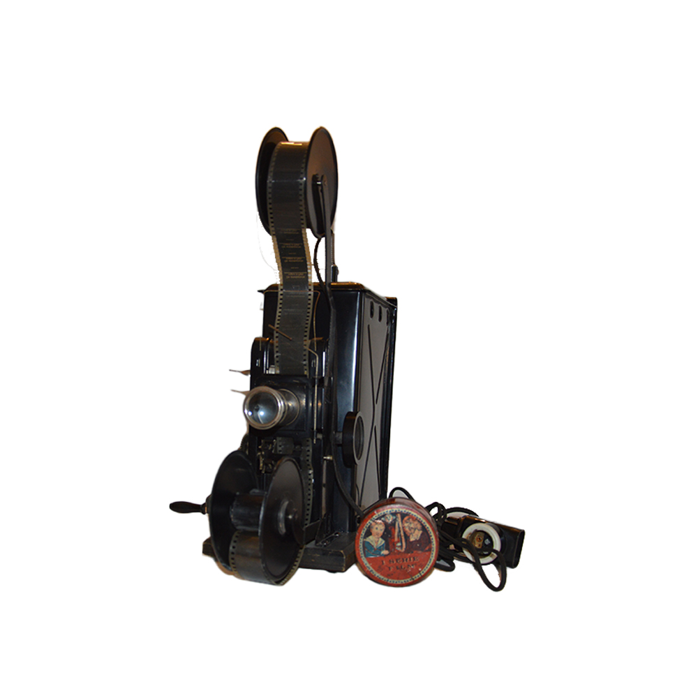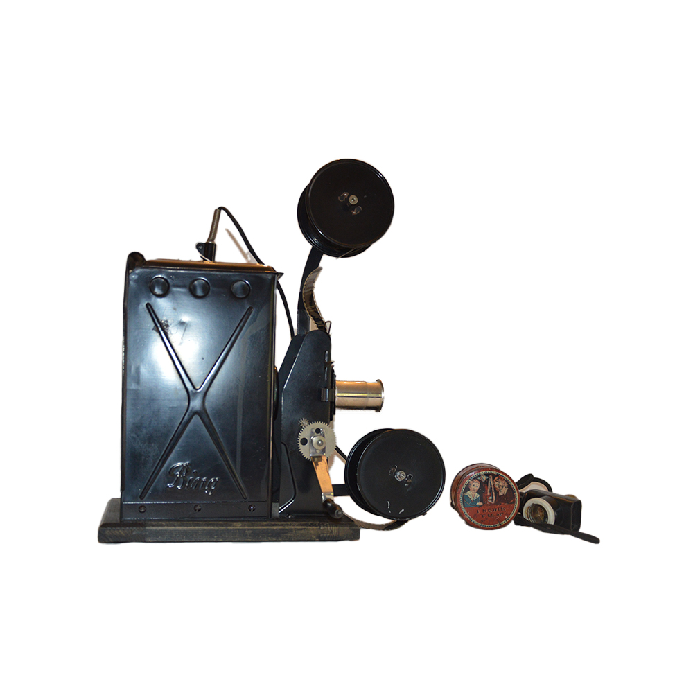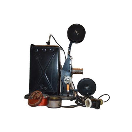 Proiettore Bing Gioco proiettore manuale completo di adattatore elettrico perfettamente funzionante con due film d'epoca, provenienza Germania ditta Gebruder Bing anno 1926, raro giocattolo. h cm 41 x 14 x 37