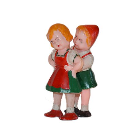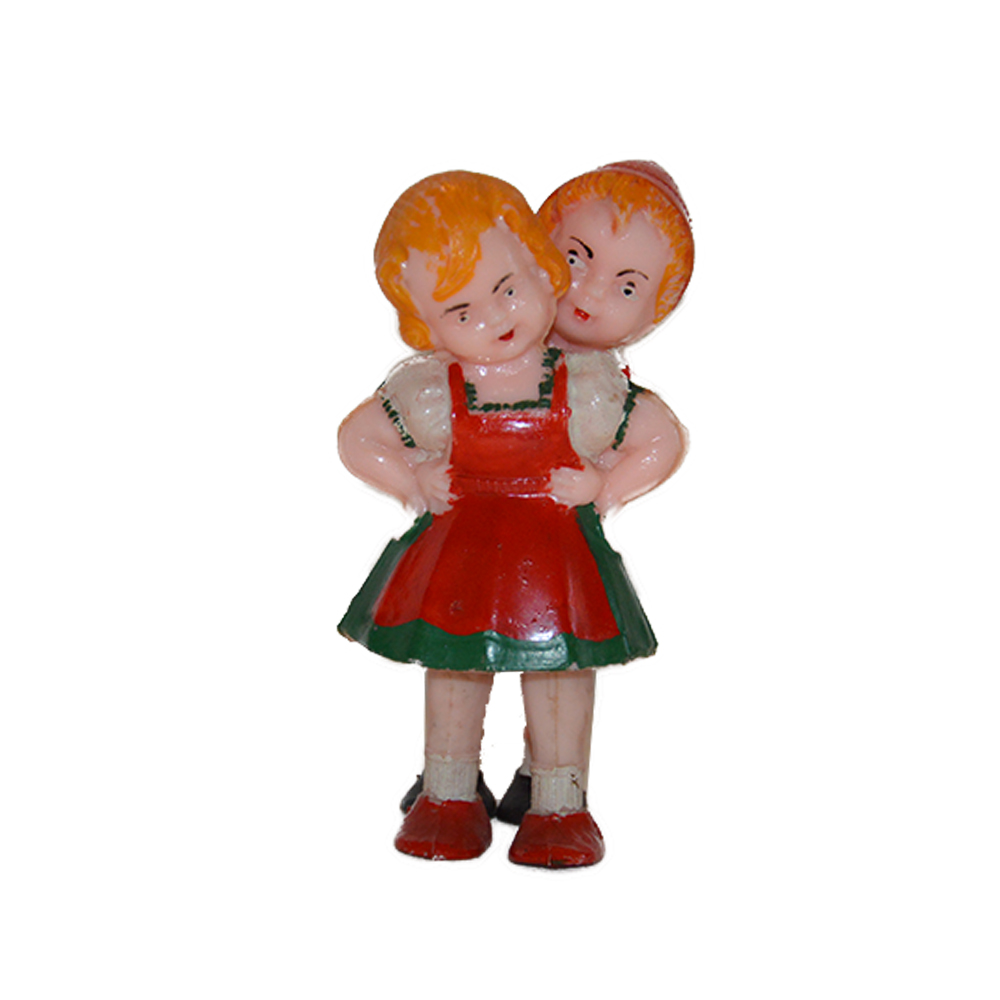 Coppia di bambolotti monelli in celluloide Gioco in celluloide dipinta a mano in ottime condizioni. Movimento ottenuto ponendoli su un piano inclinato. Provenienza Germania anno 1940. h cm 13 x 6 x 8