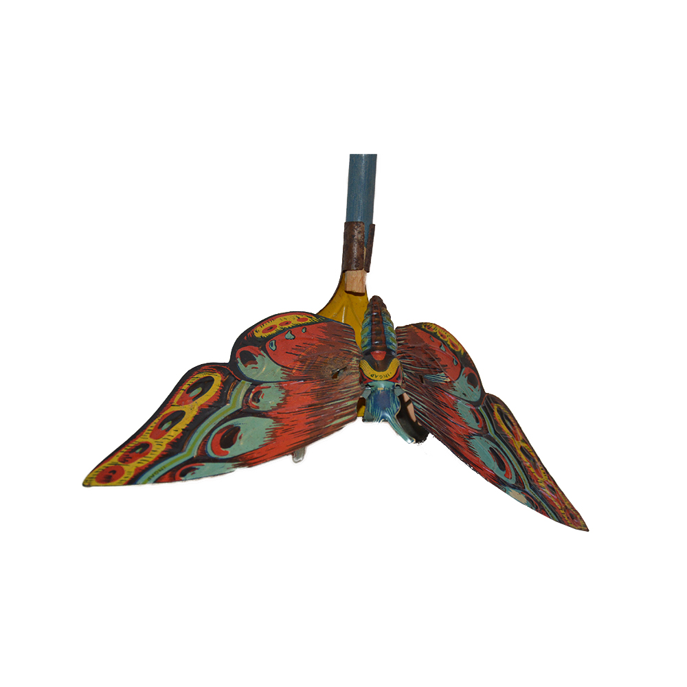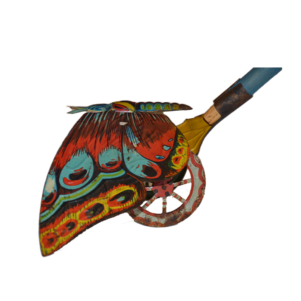 Farfalla Ingap a spinta Gioco in latta serigrafata in ottime condizioni, perfettamente funzionante. Provenienza Italia ditta Ingap anno 1930. h cm 8 x 20 x 10