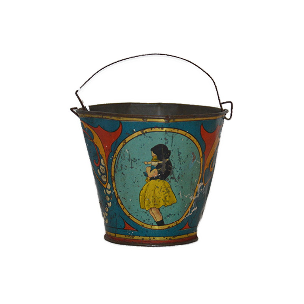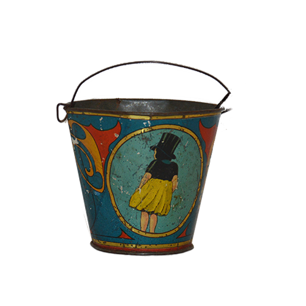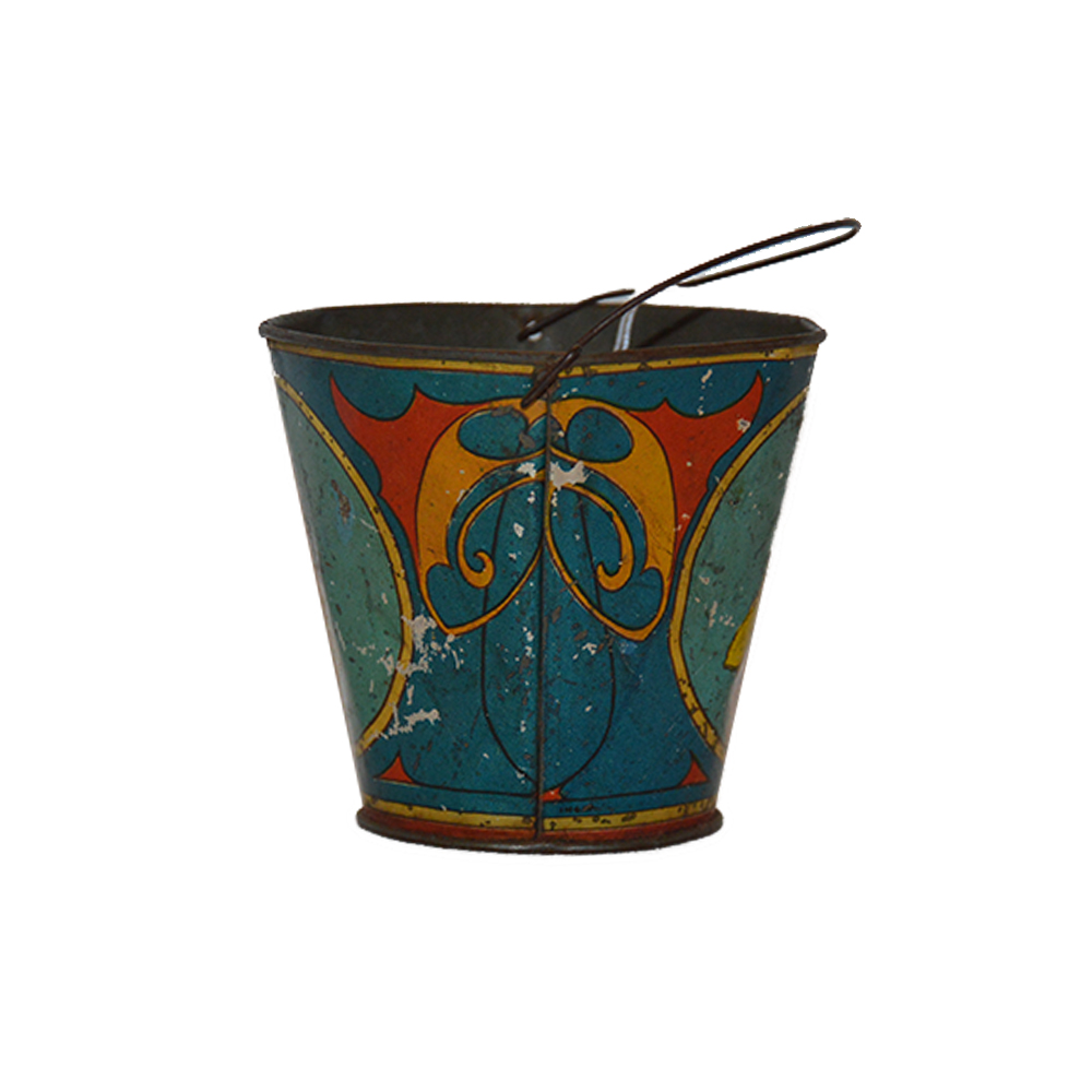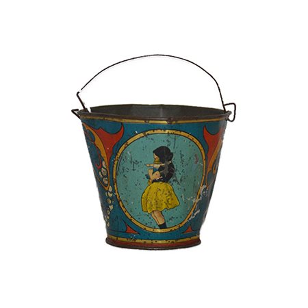 Secchiello da mare per bambini Ingap Gioco in latta serigrafata, segni di usura del tempo, provenienza Italia ditta Ingap anno 1920. h cm 12 x 8 x 8