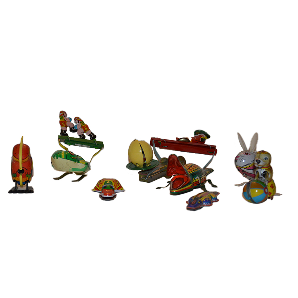 Dieci giocattoli serigrafati a molla Numero dieci giocattoli serigrafati a molla, provenienza Europa e Cina anno 1990 in ottime condizioni