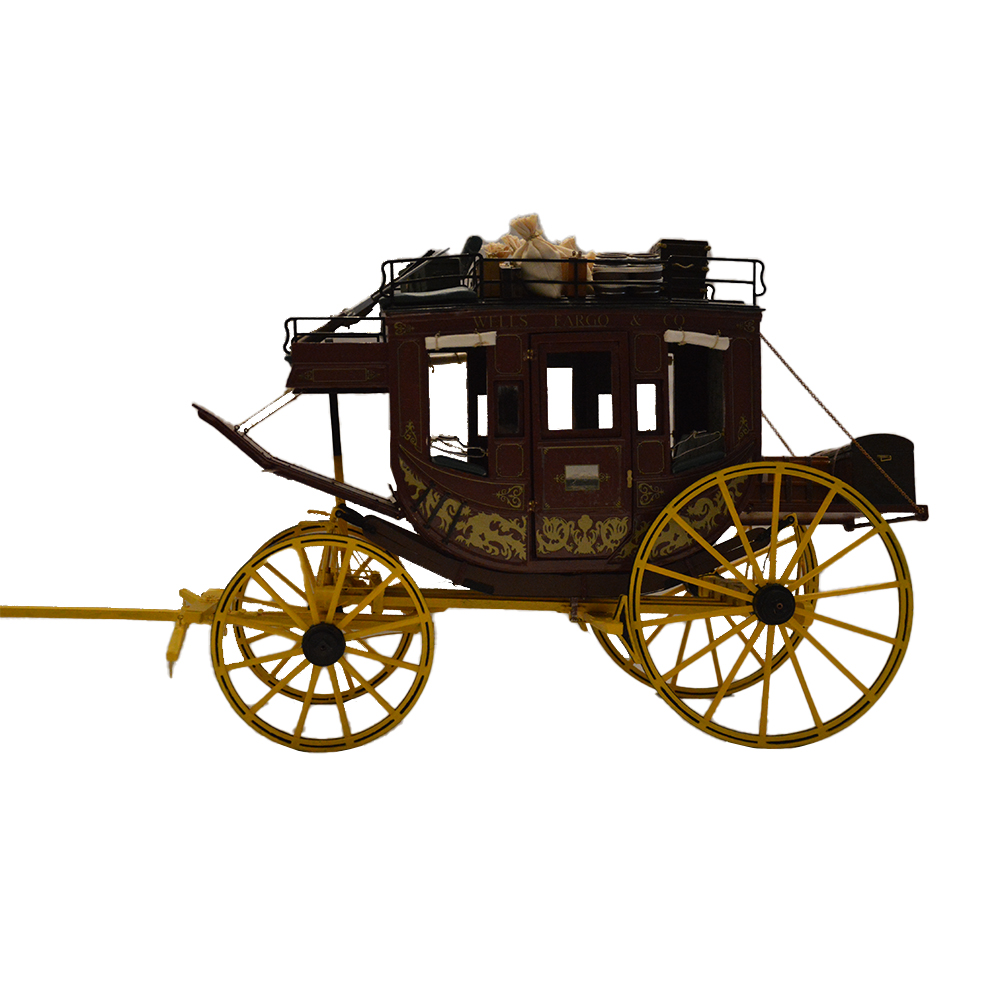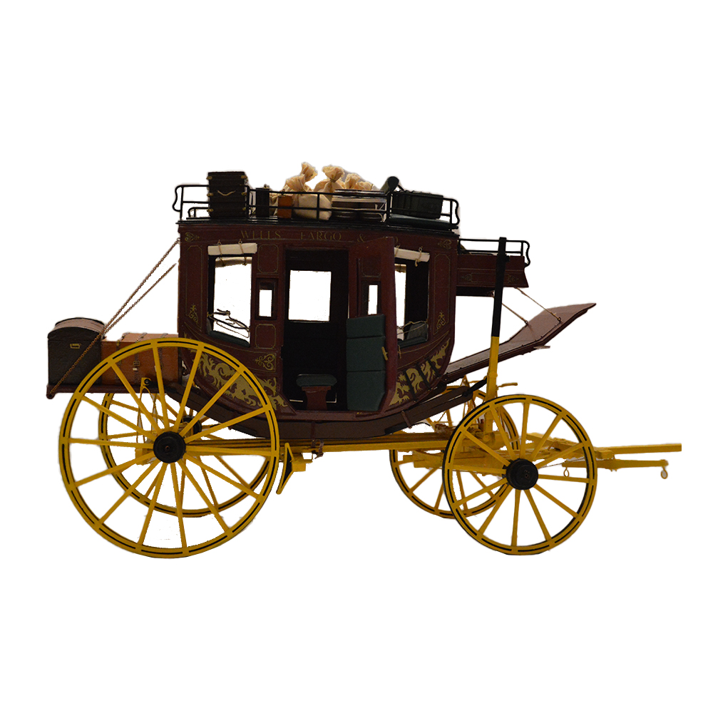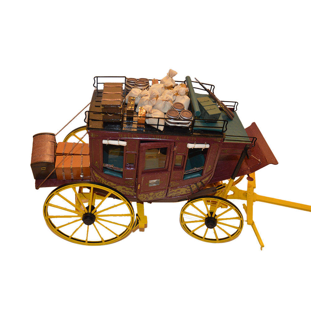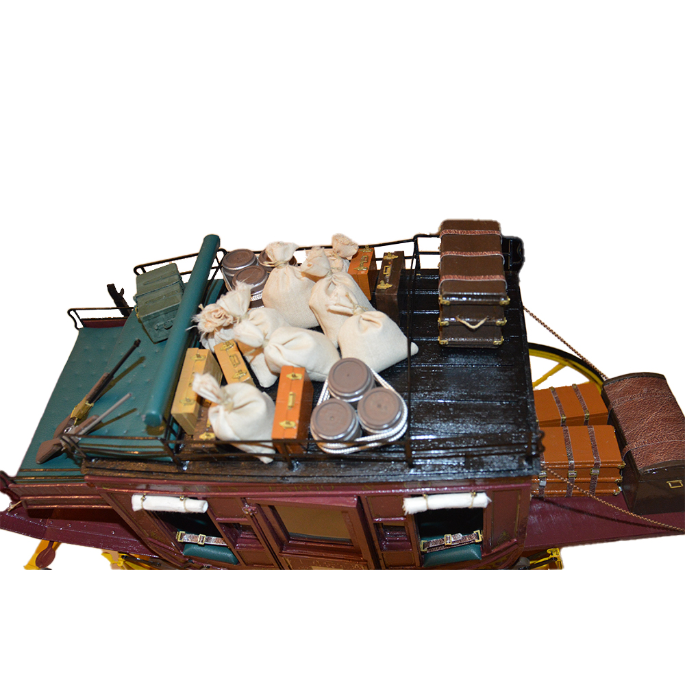 Diligenza Wells Fargo e C. Modellino diligenza in legno e metallo perfetta in tutti i particolari per amatori con valigie, bauli e accessori h cm 28 x 19 x 42 piu asse h cm 30