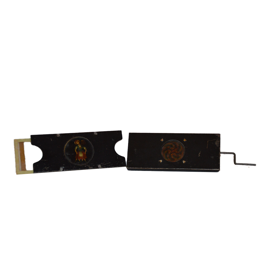 Giochi ottici per lanterna magica Numero due giochi ottici per lanterna magica, dipinte a mano in buono stato, provenienza Germania anno 1920. h cm 5 x 12
