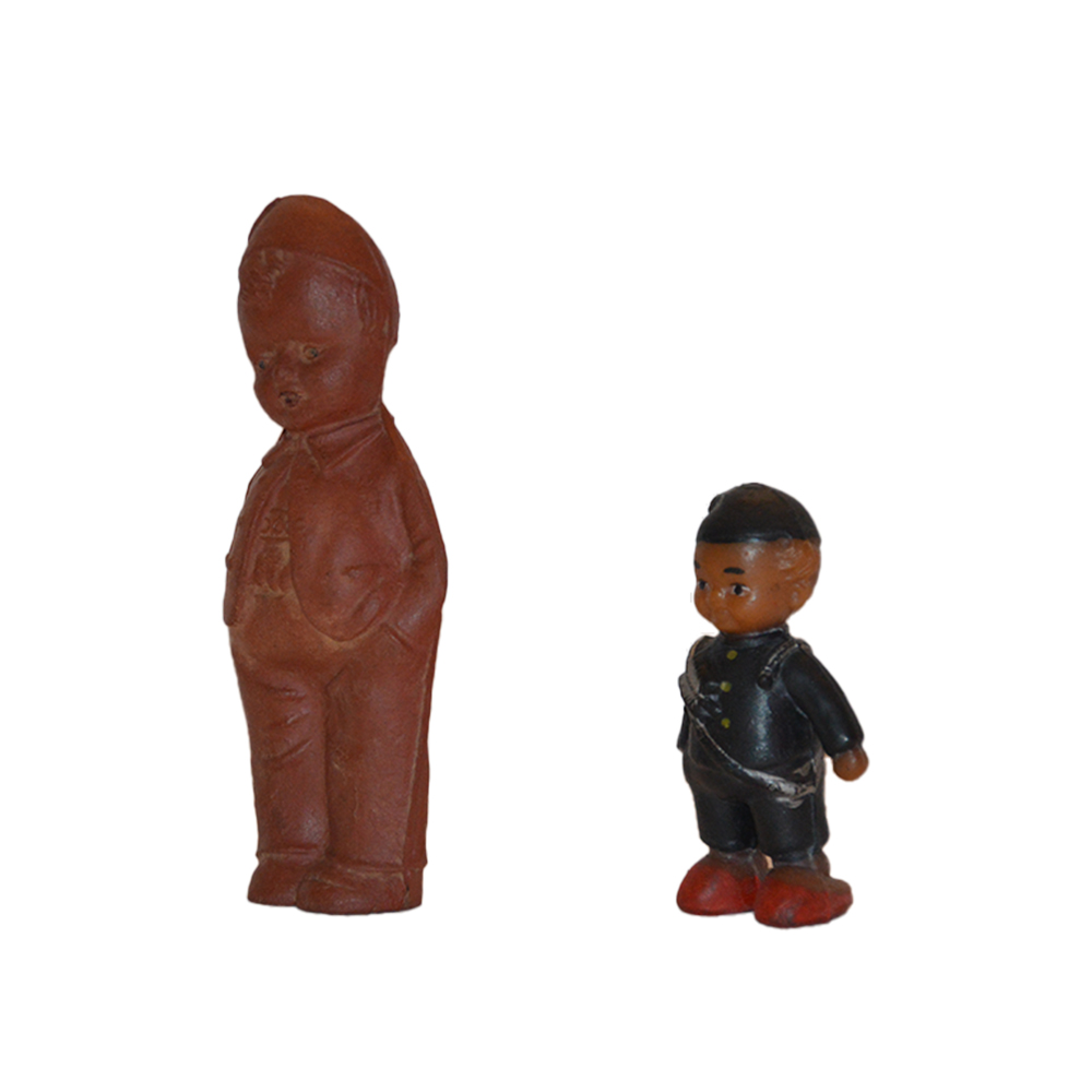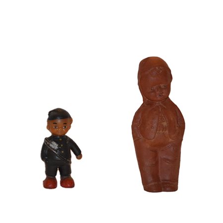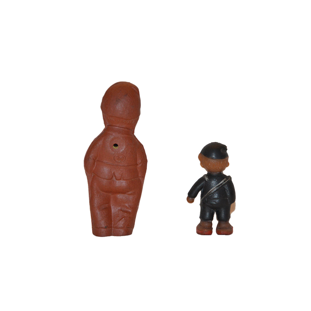 Pupazzi in gomma autarchica Numero uno sonaglio e un piccolo balilla in gomma autarchica, in buono stato, provenienza Italia h cm 7 x 12