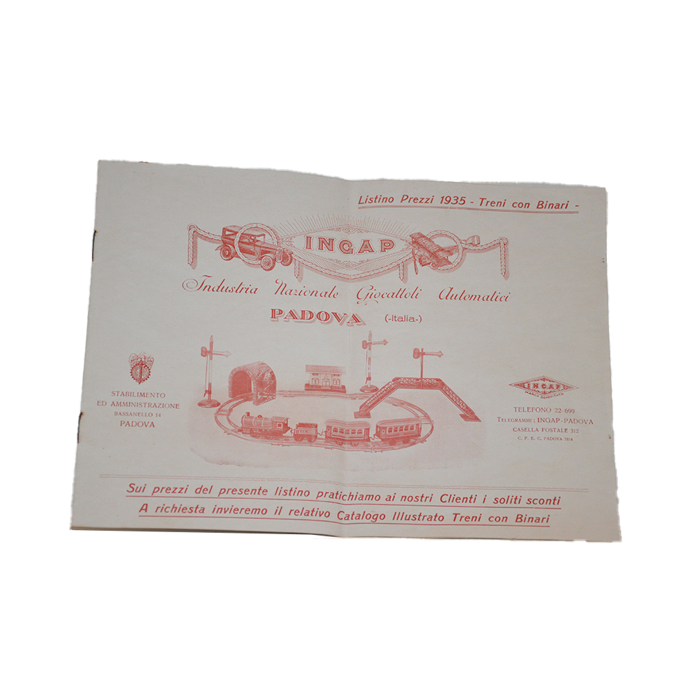 Catalogo treni Ingap Catalogo trenini in latta in ottime condizioni, provenienza Italia, ditta Ingap anno 1935. h cm 22 x 30