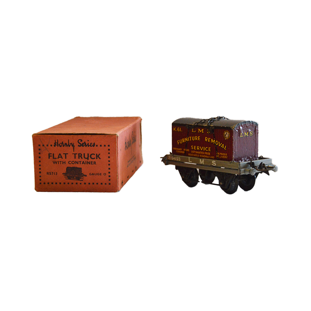 Vagone per trenino Hornby con scatola Vagone per trenino Hornby in buone condizioni con scatola provenienza Gran Bretagna ditta Hornby composto da due pezzi anno 1940. h cm 6 x 16 x 9