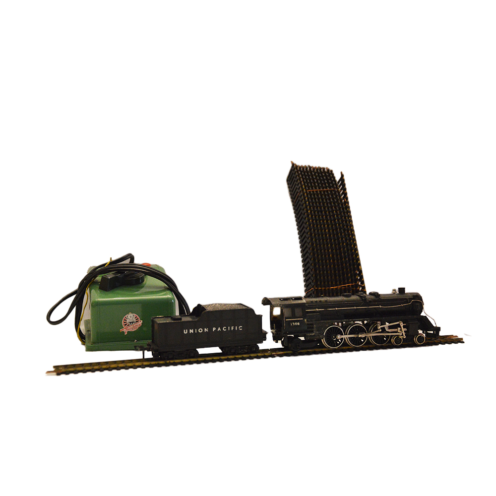 Trenino elettrico Fleischmann Trenino elettrico Fleischmann composto da locomotiva e tender con alimentatore originale e pista binari completa provenienza Germania in ottime condizioni anno 1950. h cm 6 x 4 x 18