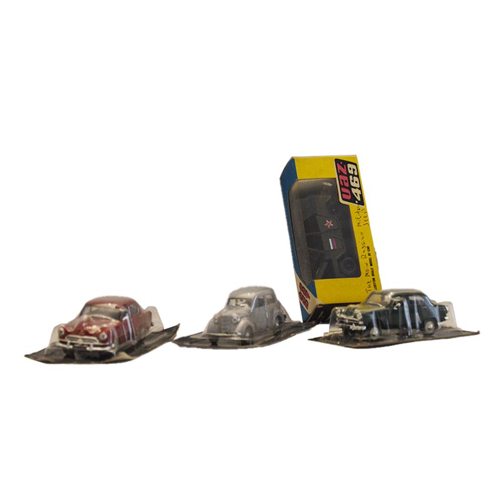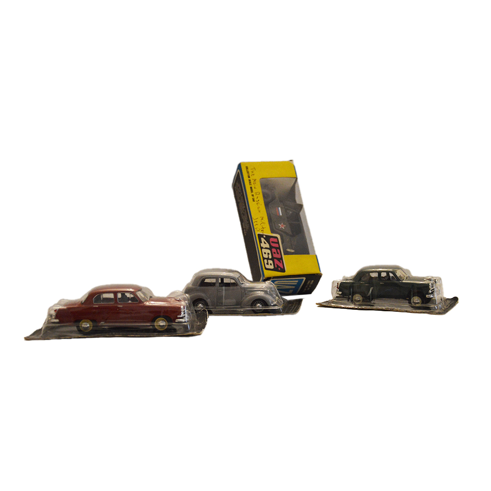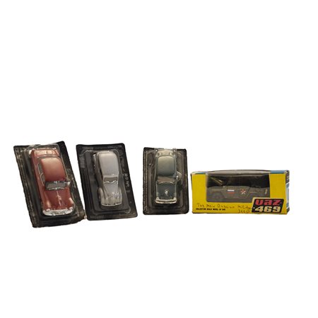 Macchinine con scatola Quattro macchinine in latta in ottime condizioni con scatola, provenienza URSS anno 1980.