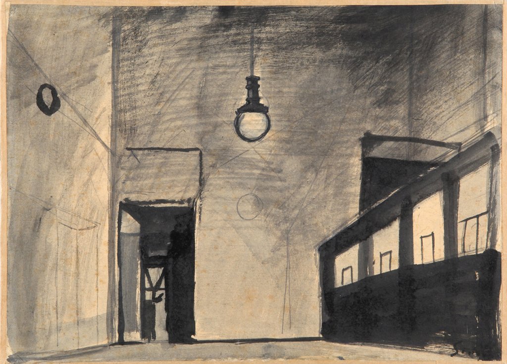 MARIO SIRONI (1885-1961) Interno di ufficio 1920 catempera, china e matita su...