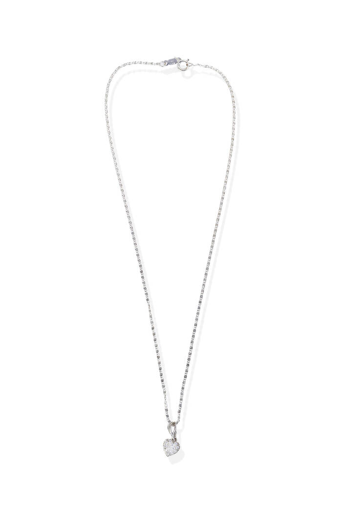 in oro bianco marcata "604AR" con ciondolo in oro bianco a forma di cuore con pavé di zirconi