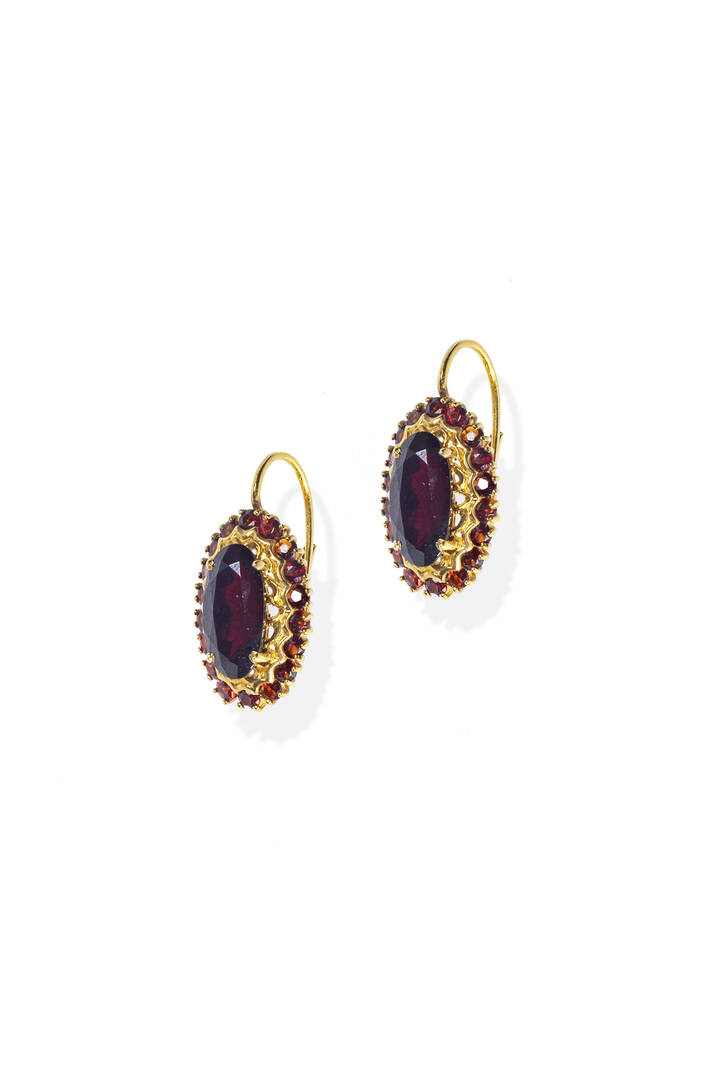 in oro giallo, a monachella, anni '50, di forma ovale con granati taglio ovale e rotondo.