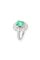 in oro bianco, anni '90, con al centro uno smeraldo taglio ottagonale a gradini di ct 2,36 ca, doppio contorno di diamanti taglio brillante e baguette per totali ct 1,0 ca, probabile colore G, purezza VS.