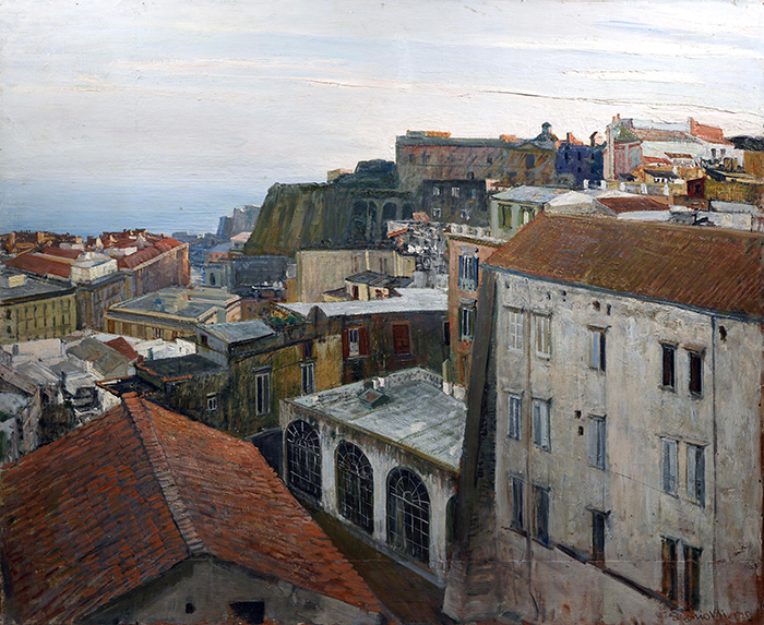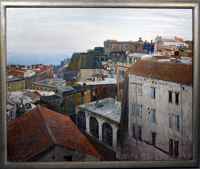 Viti Eugenio (Napoli 1885 -1952) Monte Echia olio su tavola, cm 111,5x150 firmato e datato in basso a destra: Eugenio Viti 1928 Provenienza: Coll. privata, Ancona Esposizioni: Milano, 1929; Napoli, 1930; Napoli, 1970