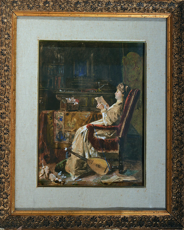 Tofano Edoardo (Napoli 1838 - Roma 1920) La lettura acquerello su carta, cm 32x23 firmato in alto a sinistra: E. Tofano