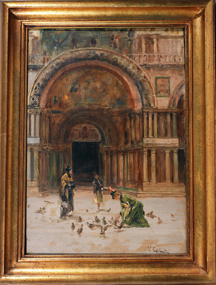 Caprile Vincenzo (Napoli 1856 - 1936) L'ingresso della Basilica di San Marco, Venezia olio su tela, cm 58x40 firmato e datato in basso a destra: V. Caprile 1901