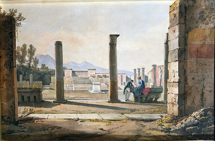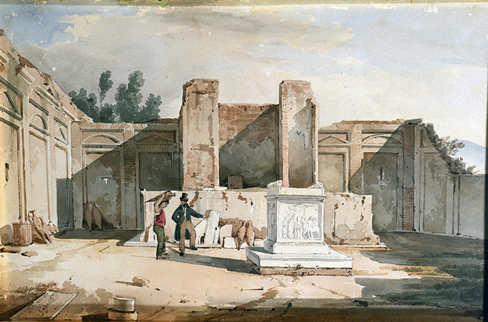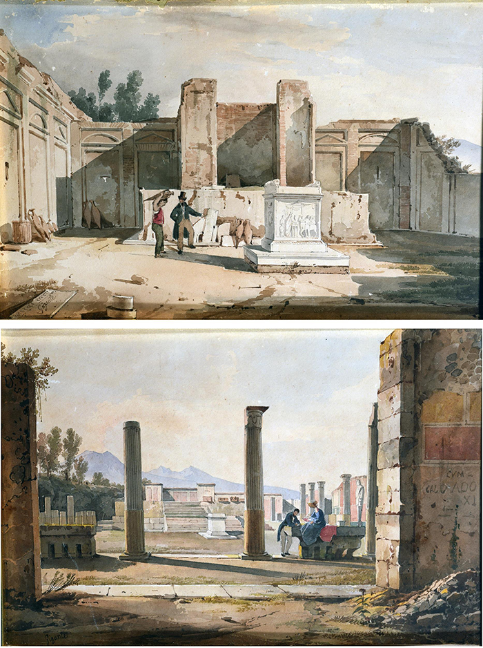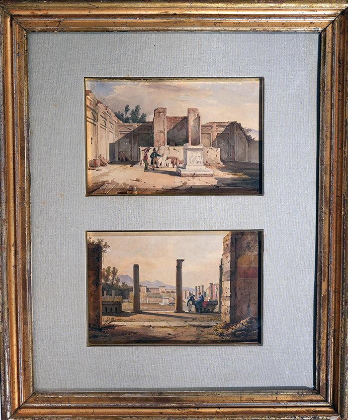 Gigante Giacinto (Napoli 1806 - 1876) a) Rovine del Tempio di Mercurio - Pompei acquerello su carta, cm 20x30,5 firmato in basso a sinistra: G. Gigante b) Resti del Tempio di Venere acquerello su carta, cm 20x30,5 firmato in basso a sinistra: G. Gigante