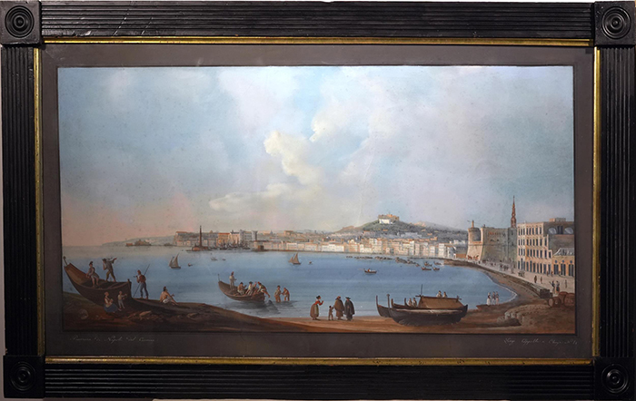 Scuola di Posillipo (XIX secolo) Panorama di Chiaia dal Carmine tecnica mista su carta, cm 42x87