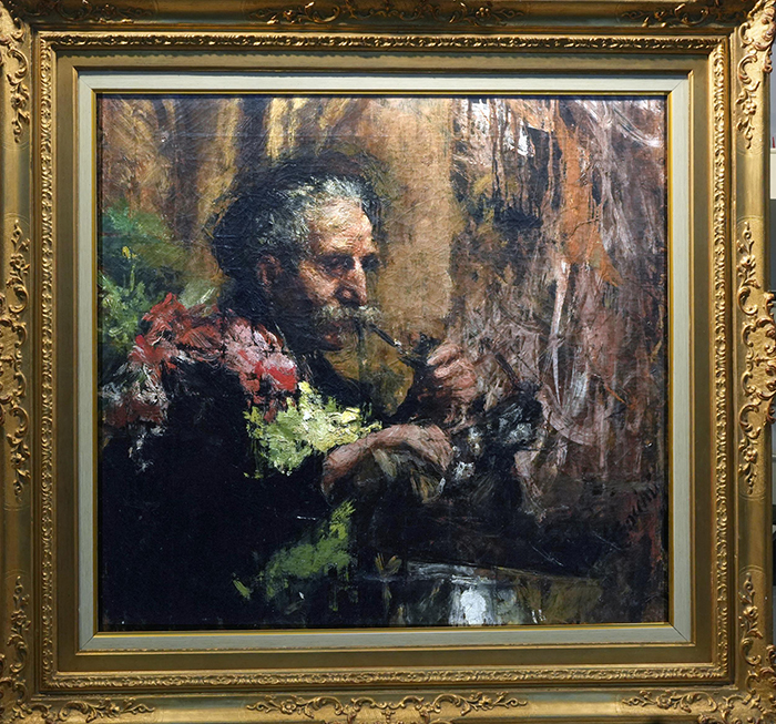 Mancini Antonio (Napoli 1852 -1930) Ritratto del padre olio su tela, cm 70x75,5 firmato in basso a destra: A. Mancini