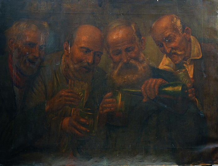 Anonimo dei XIX-XX secolo Il brindisi olio su tela, cm 75x99