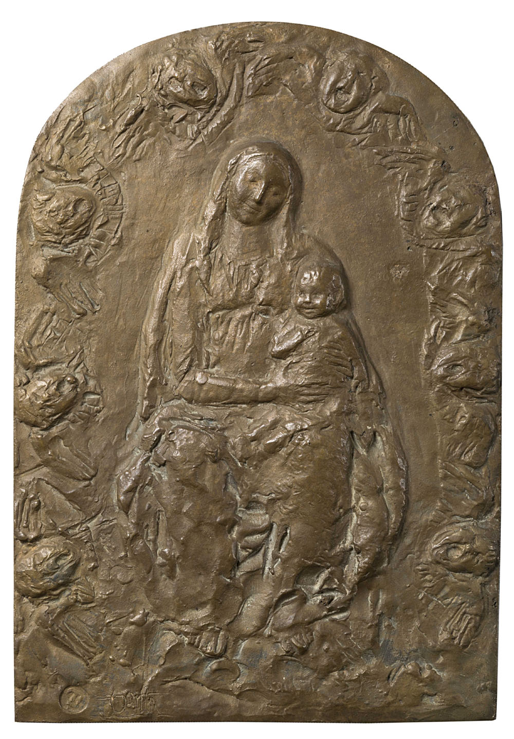 Cleto Tomba (Castel San Pietro 1898 - Bologna 1987) - "Madonna con Bambino e cherubini" altorilievo in bronzo (cm 26.5x19) Firmato in basso a sinistra In cornice