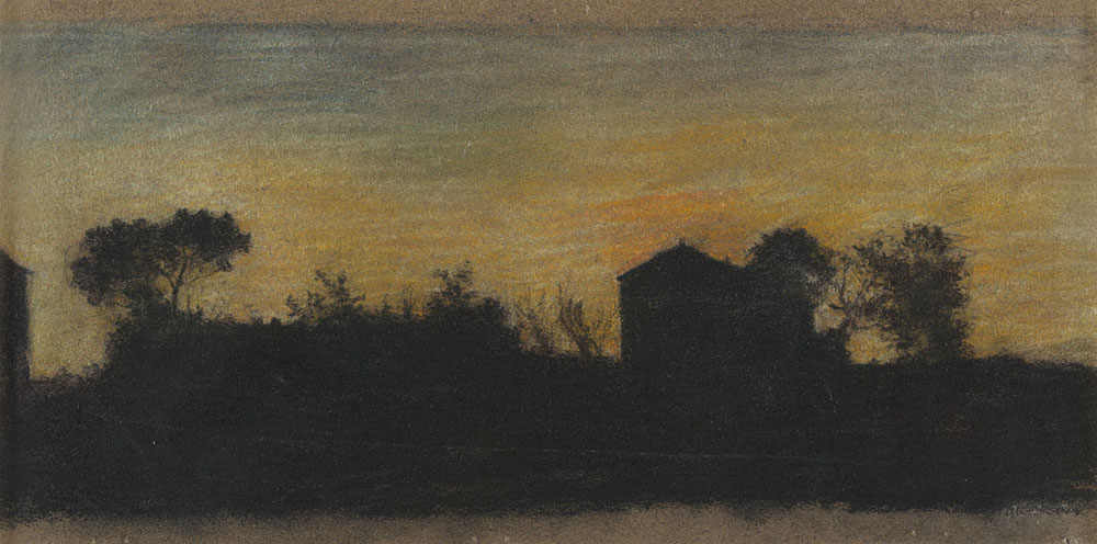 Anonimo "Il tramonto" tecnica mista (cm 34x17) In cornice