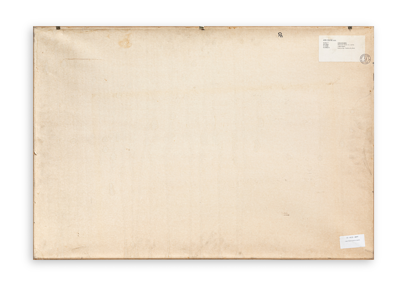 Etichetta e timbro della Galleria Arte Centro (MI) al retro del cartoncino protettivo