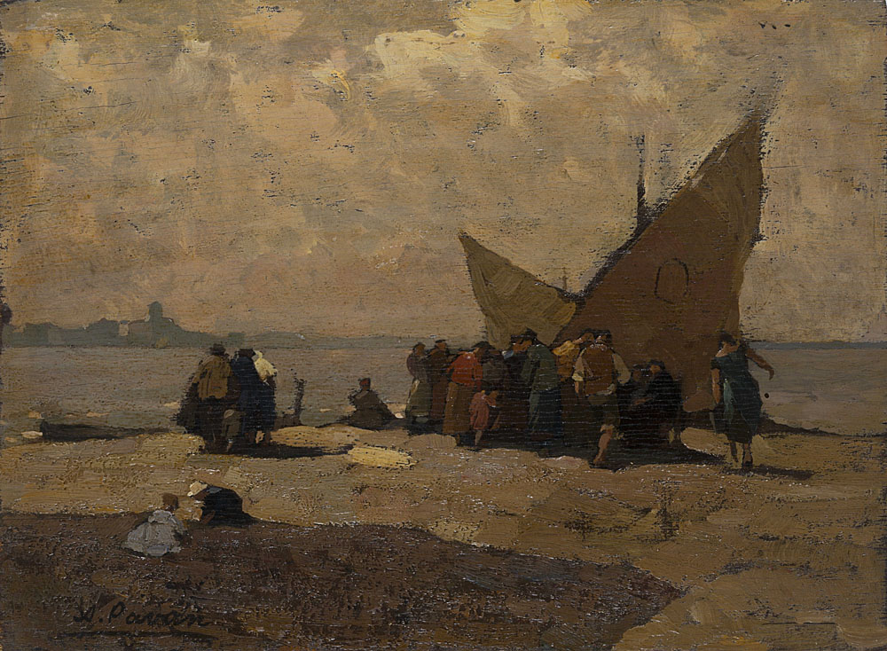 Angelo Pavan (Vicenza 1893 - Venezia 1945) - "Marina con vele" olio su compensato (cm 23x32) Firmato in basso a sinistra In cornice
