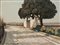Gino Romiti (Livorno 1881 - 1967) - "Viale con paese sullo sfondo" olio su...